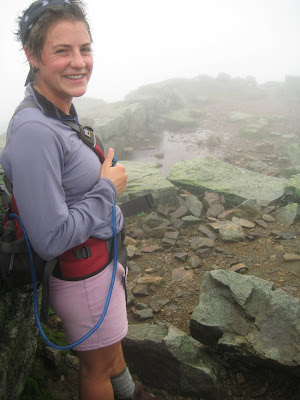 After trying our hand at drinking glasses of water in the wind, Hilary and I headed up the ridge to scout out conditions on the summit. The higher we went, the more the wind subsided, which was disappointing but made sense because Agony Ridge no longer constrained the air molecules. At the summit, a straggle of thru-hikers emerged out of the fog, looking vaguely hypothermic, though they were still energetic enough to badmouth the huts and assert the advisability of camping illegally. With little to see and peeing into the wind getting old, we headed down. It is one of the huts’ greatest luxuries that its inhabitants can habituate themselves to these initially fearsome conditions, and as Guy Waterman observed, such conditioning is one of the great joys of living in the mountains.